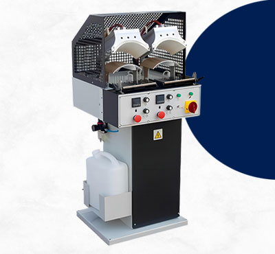 2 station toe humidifier for softening the toe puff sheet with upper and reactivate before lasting. This machine consist with the streaming system for softening the fibre and nonfibre material enables to reactivate the upper avoiding tears and avoid cracks during lasting.