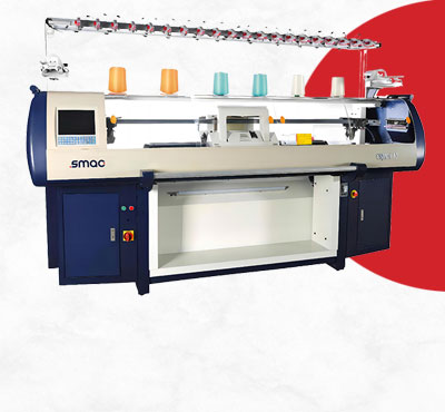 The machine will automatically alarm if yarn braking, float yarn, rewind, end of knitting, failing of racking, needle breakage, and error programming occur act. Controlled by computers, electric magnet needle choose system with high efficiency. 2x8 yarn carrier on each side of 4 guide rails, shift-able on any needle position. Programmed instruction controlled by stepping motor, 32 section levels selection adjustable area : 0- 100.